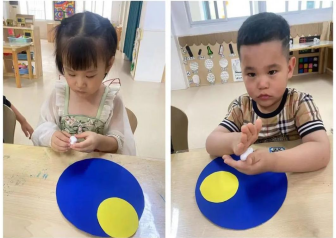 绘·中秋:宝贝们通过涂色、绘画、手工制作的方式积极参与到中秋节活动中,共同体验中秋佳节团团圆圆、其乐融融的节日氛围。