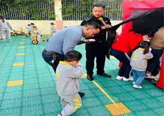 为进一步加强我园教职工及家长的消防安全意识,全力普及消防安全知识,推进幼儿园消防安全工作, 我园中班开展“大手牵小手,平安你和我” 消防演练主题活动。